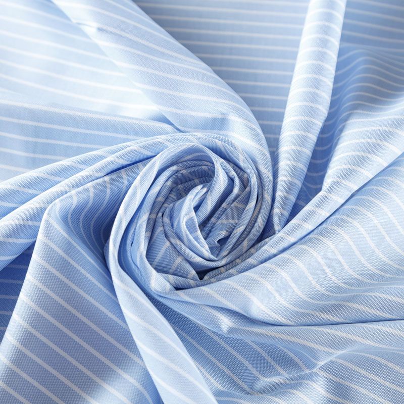 Итальянский плательно-рубашечный хлопок в белую полоску. Ткань мягкая,  средней плотности, непрозрачная, пластичная и приятная к телу, хорошо драпируется, имеет полотняное плетение. Прекрасно подойдет как для пошива платья-рубашки, сарафана, платьев различных фасонов, туники, топа, летнего костюма, комбинезона, детской и мужской одежды.