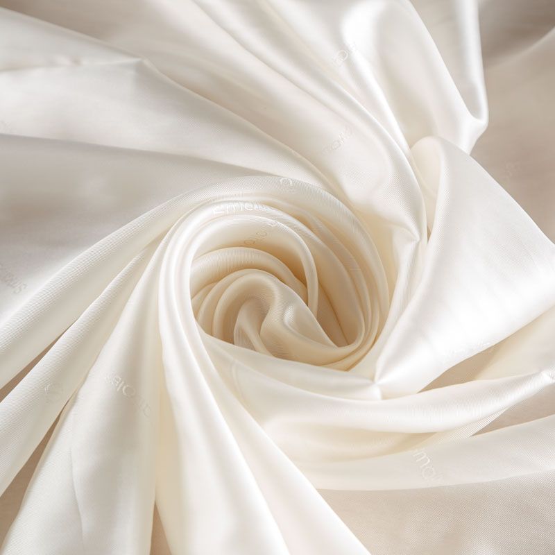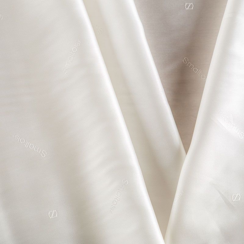 Итальянская подкладочная ткань из вискозы молочного оттенка с редким жаккардовым узором и красивым лоском. Полотно средней плотности, легкое, не просвечивает, хорошо скользит, не тянется. Подойдет для изготовления таких изделий, как пальто, костюмы, куртка, шуба, платье, жакет.
