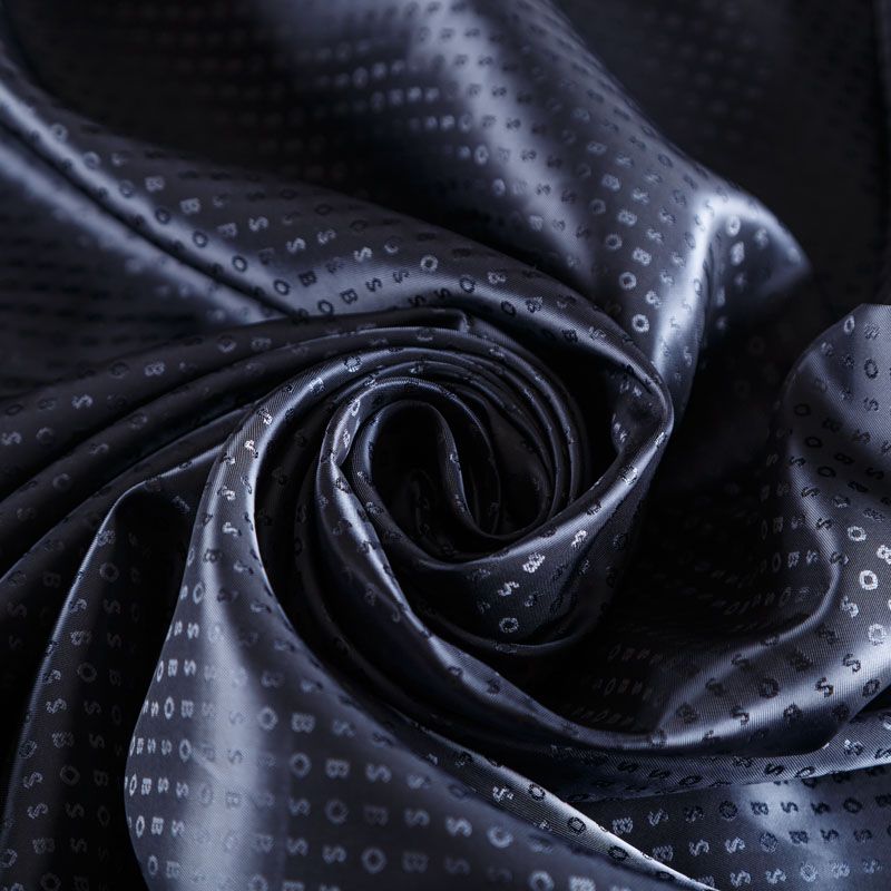 Итальянская подкладочная ткань из вискозы темно-синего оттенка с жаккардовым мелким узором и красивым блеском. Полотно легкое, не просвечивает, хорошо скользит, не тянется. Подойдет для изготовления таких изделий, как пальто, костюмы, куртка, шуба, платье, жакет.
