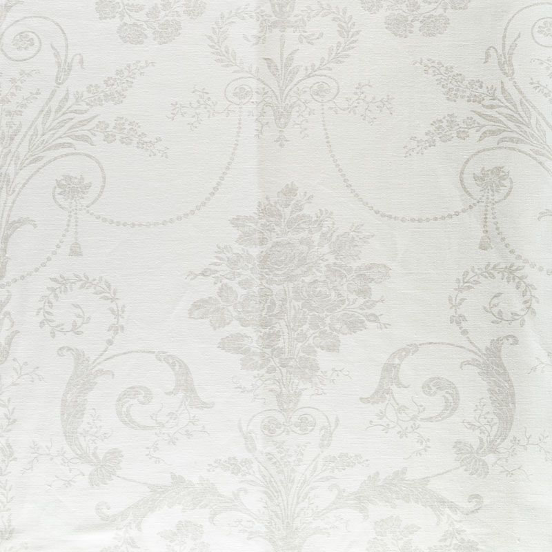 Элегантный дизайн дамасской ткани в молочно-серых оттенках добавит нотку французского гламура вашему интерьеру. Ткань средней плотности, без блеска, хорошо драпируется, имеет полонтяное переплетение. Можно использовать для пошива портьер, римской шторы, салфеток, столового белья, подушек, покрывал и других предметов текстильного интерьера.