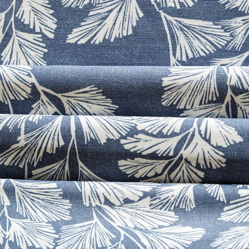 Хлопковая портьерная ткань английского производителя. На синей текстурированной основе наснесен принт в виде изящных веточек в монохромной гамме. Ткань средней плотности, прекрасно держит форму, драпируется в устойчивые складки. Подойдет для классических портьер, римских штор, покрывал, подушек, скатертей, салфеток и других элементов текстильного интерьера как в самостоятельном исполнении, так и качестве компаньона к однотонным варинтам.