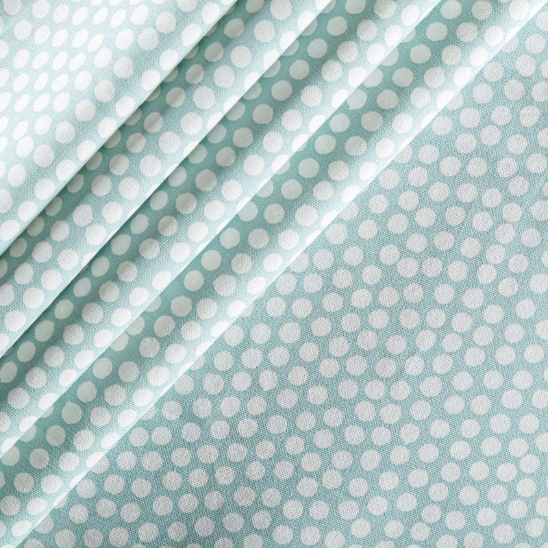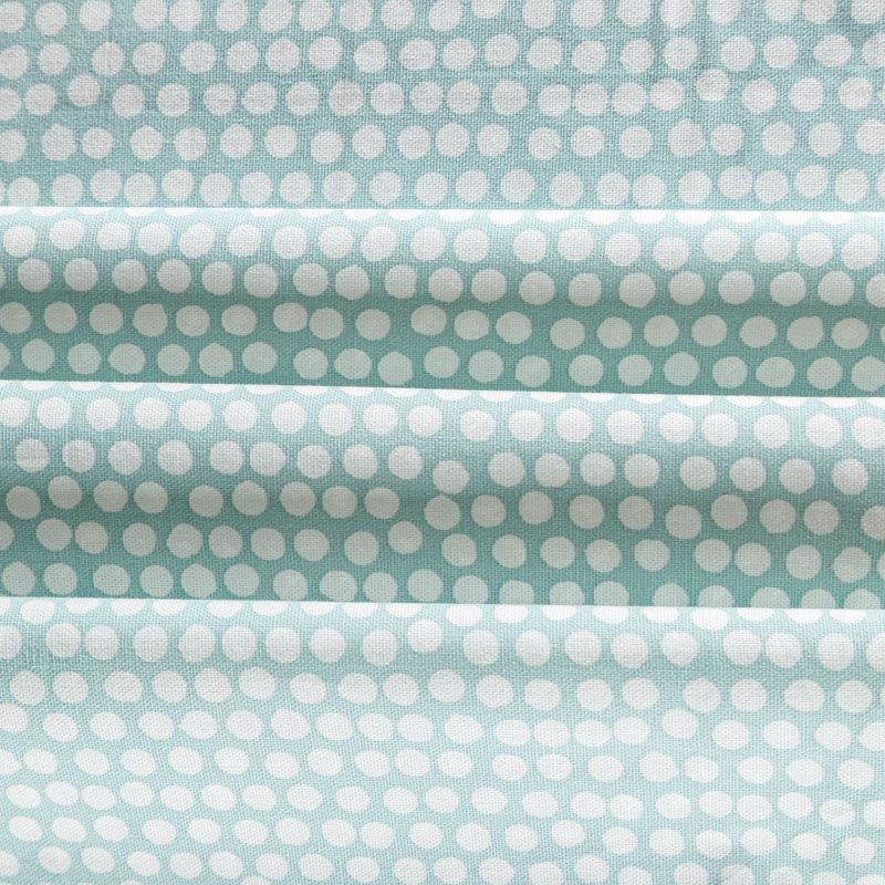 Хлопковая портьерная ткань Спотти из коллекции Сканди английского производителя Fryett's Fabric. На мятно-бирюзовой текстурированной основе наснесен принт в виде белых кружков-пятнышек. Ткань средней плотности, прекрасно держит форму, драпируется в устойчивые складки. Подойдет для классических портьер, римских штор, покрывал, подушек, скатертей, салфеток и других элементов текстильного интерьера как в самостоятельном исполнении, так и качестве компаньона к однотонным варинтам.