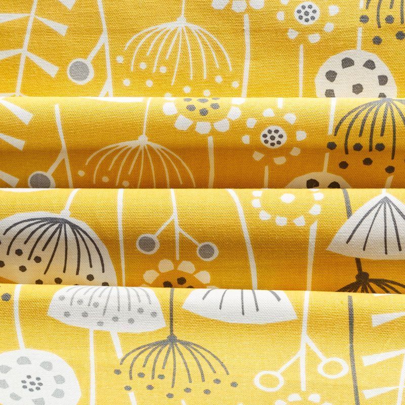 Хлопковая портьерная ткань Берген из коллекции Сканди английского производителя Fryett's Fabric. На желтой текстурированной основе наснесен принт в виде стилизованных растений и цветов в монохромной гамме. Ткань средней плотности, прекрасно держит форму, драпируется в устойчивые складки. Подойдет для классических портьер, римских штор, покрывал, подушек, скатертей, салфеток и других элементов текстильного интерьера как в самостоятельном исполнении, так и качестве компаньона к однотонным варинтам.