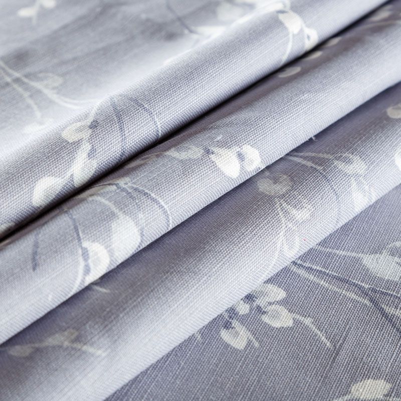 Хлопковая портьерная ткань с изящным весенним принтом в монохромной гамме на сером фоне. Ткань средней плотности, без блеска, хорошо драпируется, имеет полонтяное переплетение. Можно использовать для пошива портьер, римской шторы, салфеток, столового белья, подушек, покрывал и других предметов текстильного интерьера.