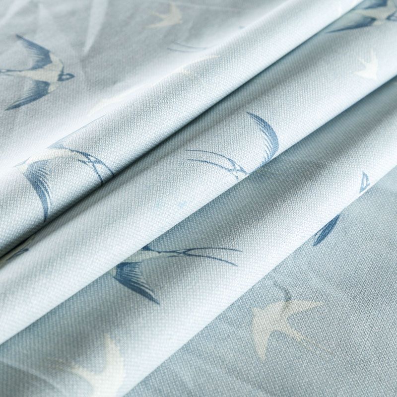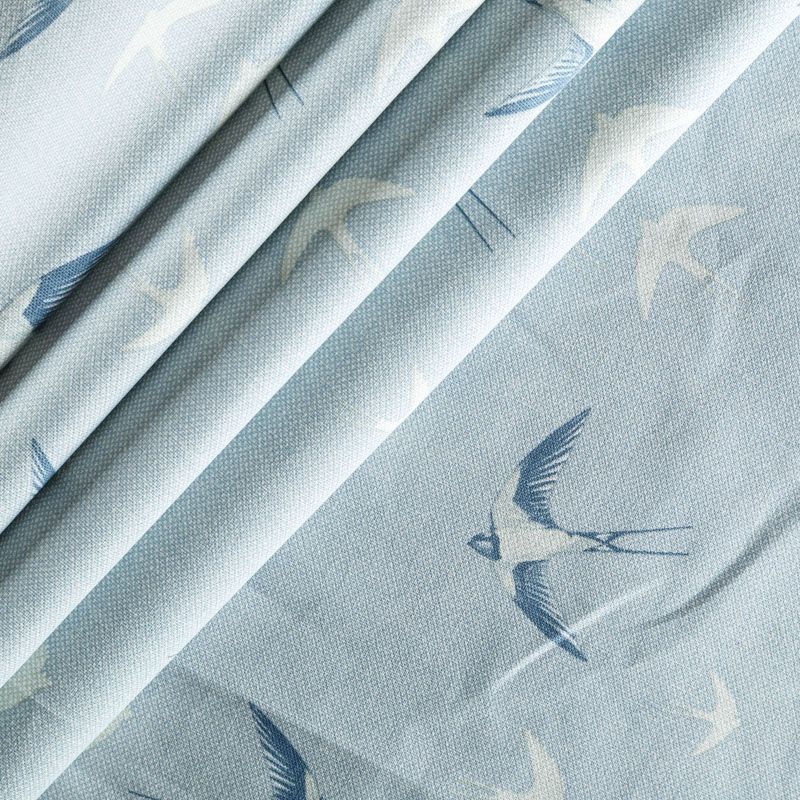 Хлопковая портьерная ткань Ласточки от английского производителя Fryett's Fabric. На серой текстурированной основе наснесен принт в виде стилизованных птиц. Ткань средней плотности, прекрасно держит форму, драпируется в устойчивые складки. Подойдет для классических портьер, римских штор, покрывал, подушек, скатертей, салфеток и других элементов текстильного интерьера как в самостоятельном исполнении, так и качестве компаньона к однотонным варинтам.