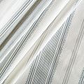 Матовая фактурная портьерная ткань в тонкую полоску, которая расположена вдоль кромки. Представлена в бело-серой палитре. Ткань средней плотности, без блеска, хорошо драпируется, имеет полонтяное переплетение. Прекрасно впишется в самые разные стилевые направления (прованс, кантри). Можно использовать для пошива портьер, римской шторы, салфеток, столового белья, подушек, покрывал и других предметов текстильного интерьера.