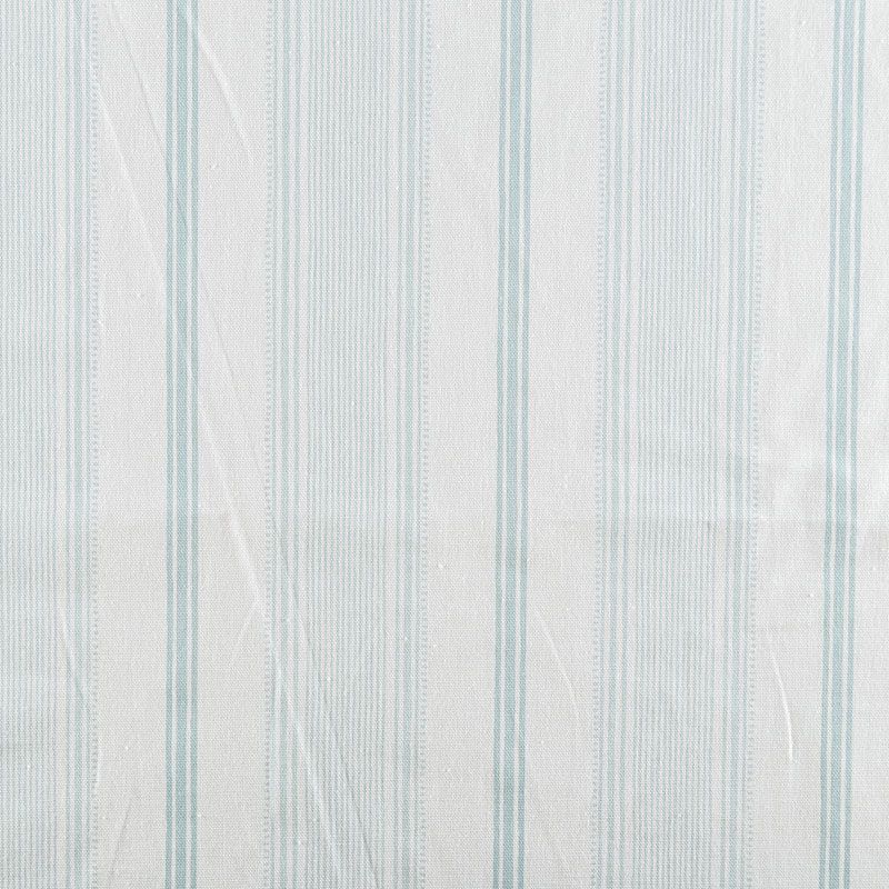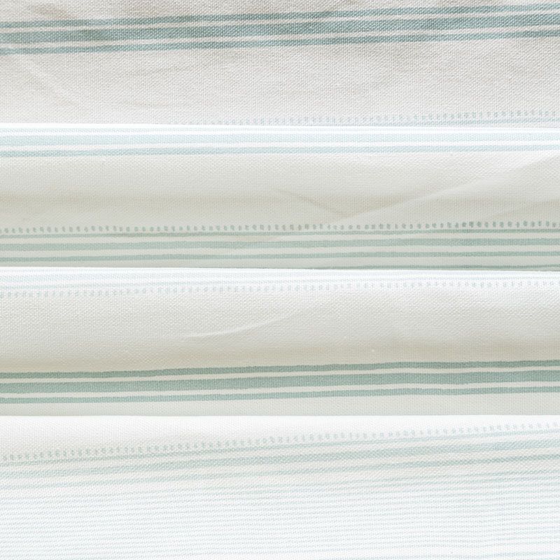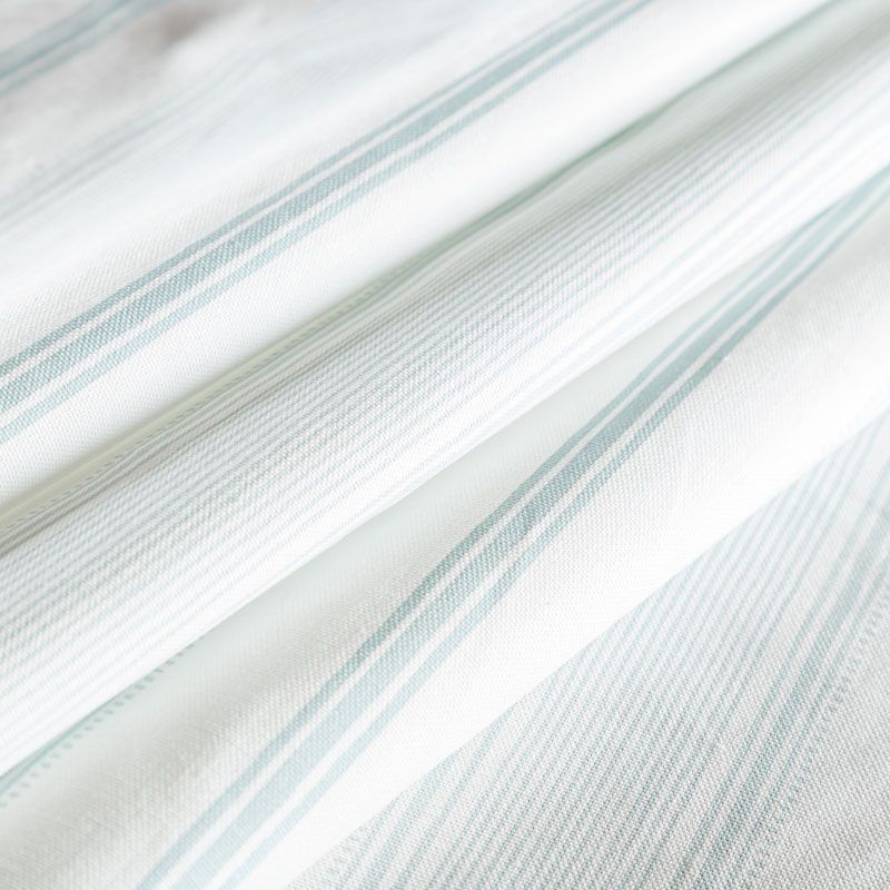 Матовая фактурная портьерная ткань в полоску, которая расположена вдоль кромки. Представлена в светло-бирюзовой палитре. Ткань средней плотности, без блеска, хорошо драпируется, имеет полонтяное переплетение. Прекрасно впишется в самые разные стилевые направления (прованс, кантри). Можно использовать для пошива портьер, римской шторы, салфеток, столового белья, подушек, покрывал и других предметов текстильного интерьера.