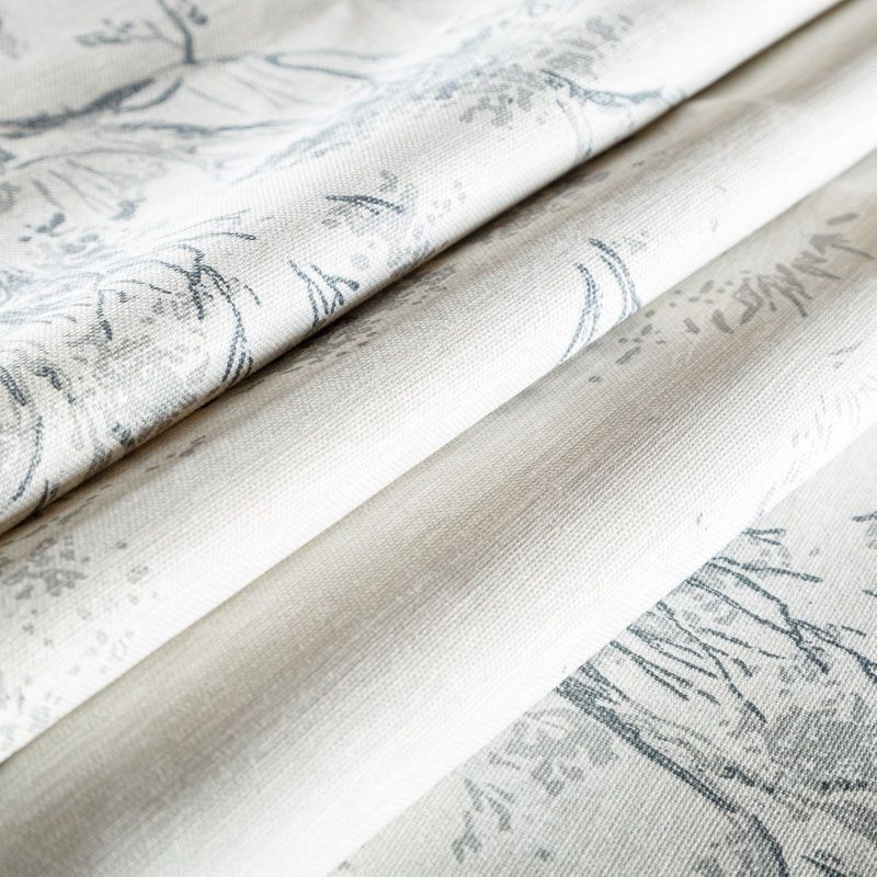 Хлопковая портьерная ткань английского производителя. На светлой текстурированной основе нанесен изящный растительный принт в серой гамме. Ткань средней плотности, прекрасно держит форму, драпируется в устойчивые складки. Подойдет для классических портьер, римских штор, покрывал, подушек, скатертей, салфеток и других элементов текстильного интерьера как в самостоятельном исполнении, так и качестве компаньона к однотонным варинтам.