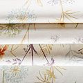 Натуральная хлопковая портьерная ткань с принтом полевых растений в пастельных нежных оттенках. Ткань средней плотности, без блеска, хорошо драпируется, имеет полонтяное переплетение. Прекрасно подойдет для оформления детской, кухни, столовой или дачного интерьера. Можно использовать для пошива портьер, римской шторы, салфеток, столового белья, подушек, покрывал и других предсетов текстильного интерьера.