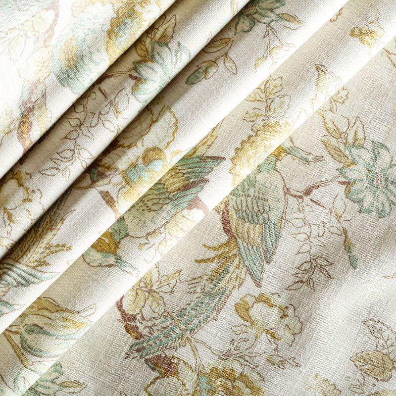 Элегантная ткань из коллекции Ренессанс известного бренда Fryett's с тропическим рисунком, выполненным в мельчайших деталях, нанесенных на текстурированную хлопковую основу. Ткань средней плотности, прекрасно держит форму, драпируется в устойчивые складки. Подойдет для плотных штор, покрывал, подушек, скатертей, салфеток  и других элементов текстильного интерьера как в самостоятельном исполнении, так и качестве компаньона к цветным варинтам.