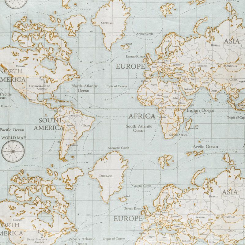 Хлопковая ткань с от английского производителя с гео принтом для юных искателей приключений и любителей путешествовать.Ткань средней плотности, без блеска, хорошо драпируется, имеет полонтяное переплетение. Прекрасно подойдет для оформления детской или дачного интерьера. Можно использовать для пошива портьер, римской шторы, салфеток, столового белья, подушек, покрывал, обивки мебели.