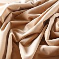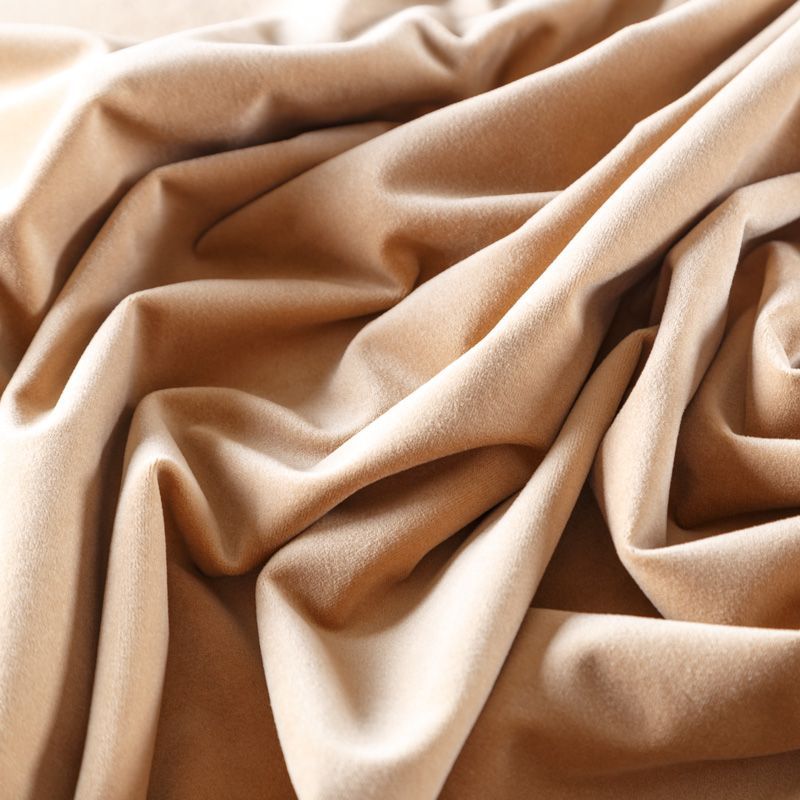Портьерная ткань бархат с коротким ворсом. Красиво, мягко и пластично драпируется, ложась мягкими, струящимися складками, приятная на ощупь, поверхность отливает благородным блеском. Этот бархат предназначен для пошива штор, покрывал, декоративных подушек и других текстильных предметов интерьера. Портьеры из этой ткани задерживают свет и приглушают звуки. Особенно богато смотрится в гостиных и спальных комнатах.