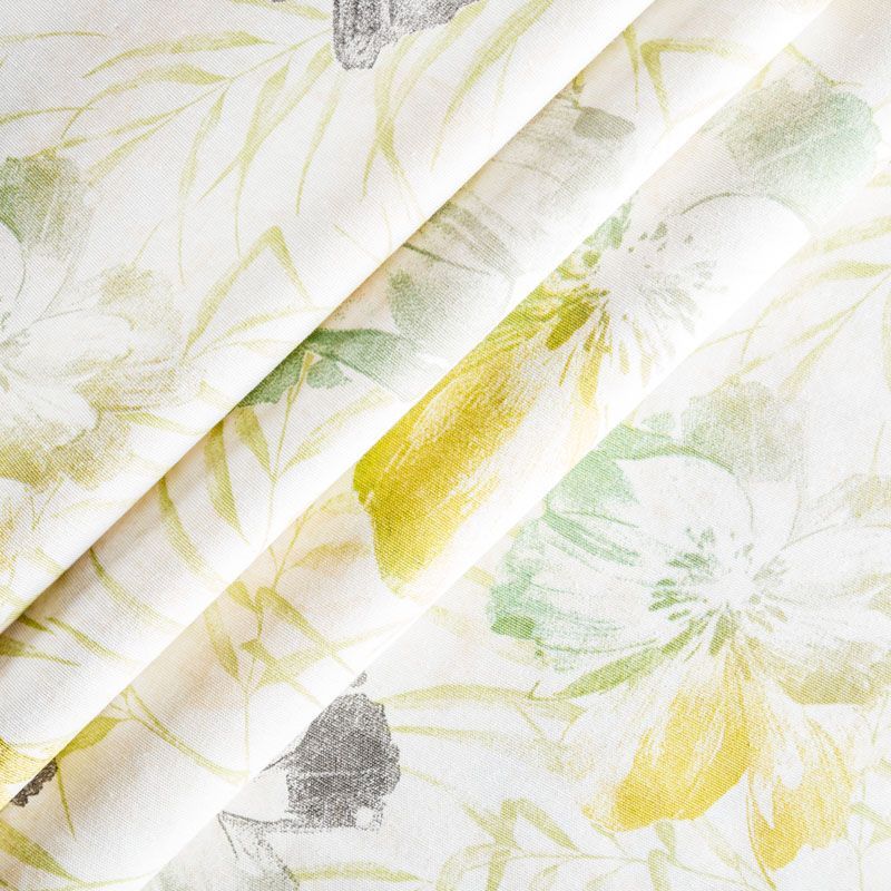 Декоративный смесовый хлопок с флористическим принтом от испанского производителя Visatex. Ткань средней плотности, приятная и гладкая на ощупь. Интересный вариант для пошива штор, декоративных подушек и покрывал, изготовления текстильных элементов в кухнях-столовых, гостинных, спальнях и даже детских.