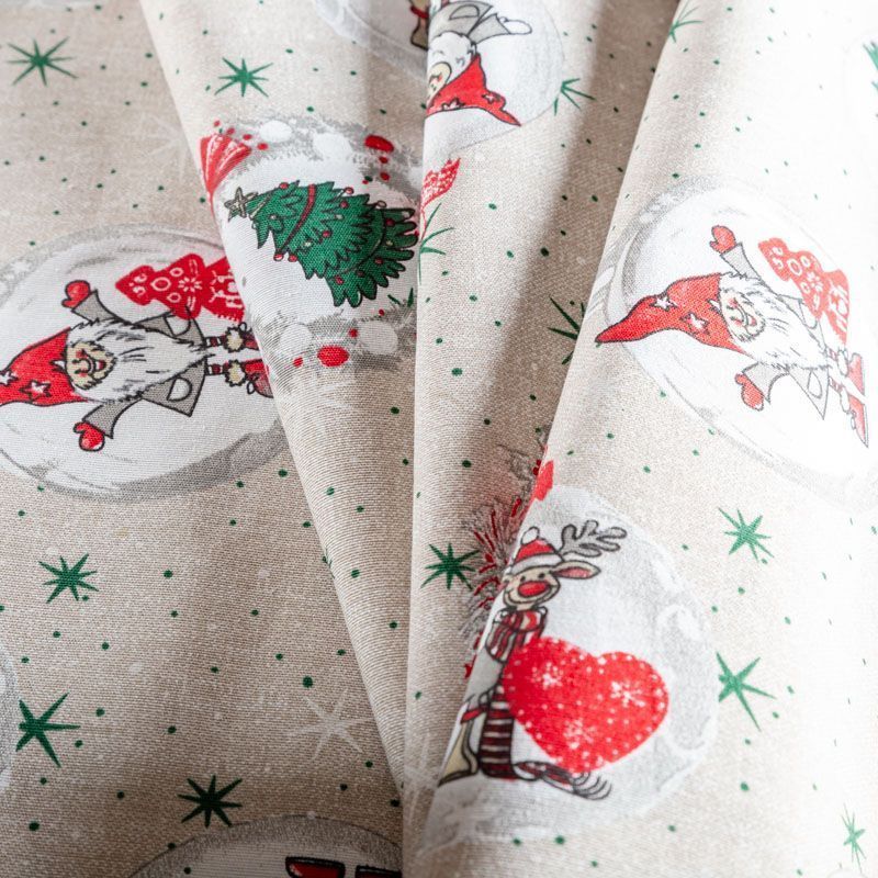 Декоративный смесовый хлопок со стилизованным рождественским принтом от испанского производителя Visatex. Ткань средней плотности, приятная и гладкая на ощупь. Интересный вариант для пошива штор, декоративных подушек и покрывал, изготовления текстильных элементов в кухнях-столовых, гостинных, спальнях и даже детских.