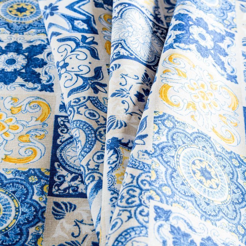 Декоративный смесовый хлопок со стилизованным принтом от испанского производителя Visatex. Ткань средней плотности, приятная и гладкая на ощупь. Интересный вариант для пошива штор, декоративных подушек и покрывал, изготовления текстильных элементов в кухнях-столовых, гостинных, спальнях и даже детских.