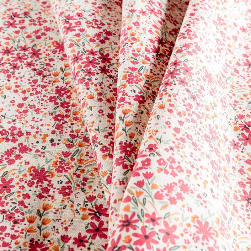 Декоративный смесовый хлопок с мелким цветочным принтом от испанского производителя Visatex. Ткань средней плотности, приятная и гладкая на ощупь. Интересный вариант для пошива штор, декоративных подушек и покрывал, изготовления текстильных элементов в кухнях-столовых, гостинных, спальнях и даже детских.