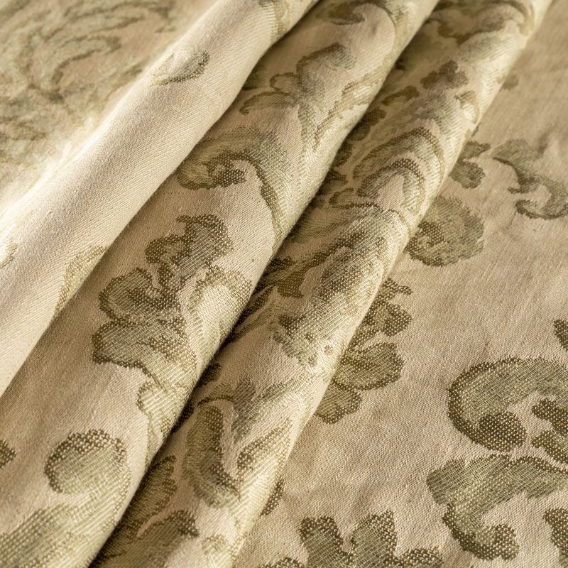 Натуральная льняная жаккардовая портьера с классическим вензелем в зеленой цветовой гамме. Ткань плотная, тяжелая, может драпироваться в большие складки. Лен подойдет для плотных штор, покрывал, подушек, скатертей и салфеток, обивки мебели, Прекрасно впишется в интерьер как в совеременном стиле, так и в стиле прованс.