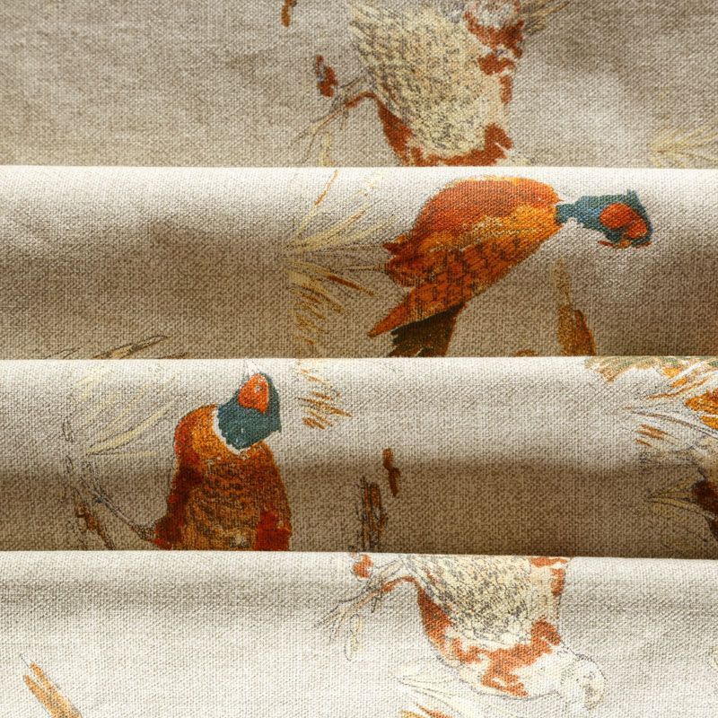 Английская ткань из коллекции Фазан известного бренда Fryett's изображением ярких птиц на текстурированной хлопковой основе. Ткань средней плотности, прекрасно держит форму, драпируется в устойчивые складки. Подойдет для плотных штор, покрывал, подушек, скатертей, салфеток и других элементов текстильного интерьера.