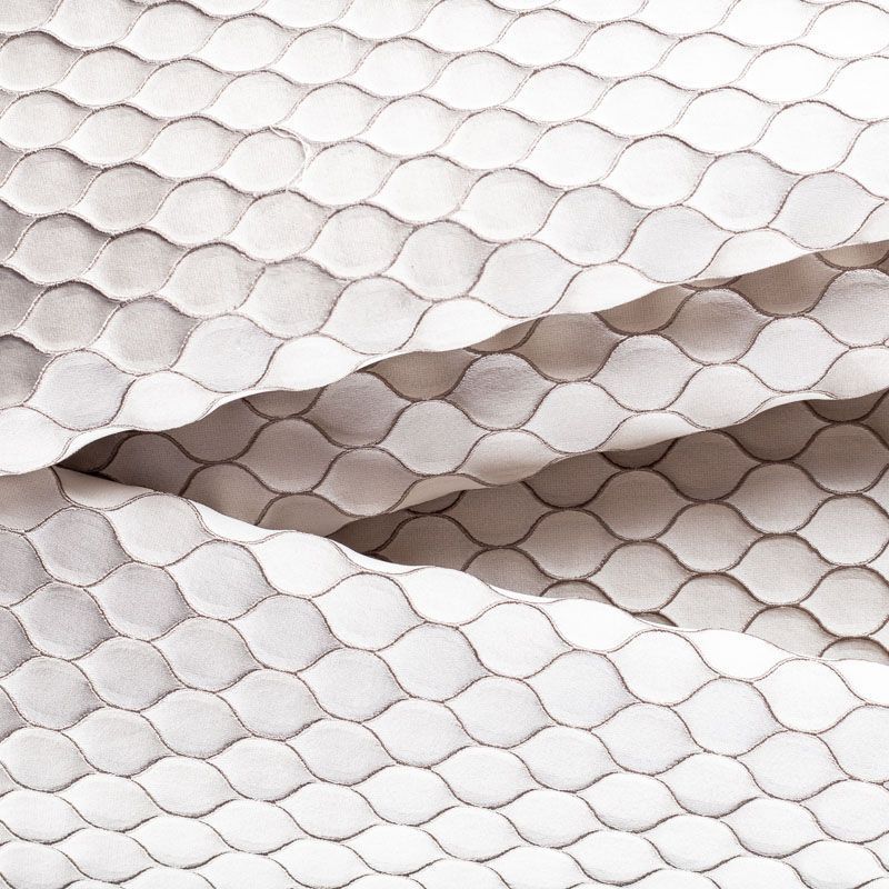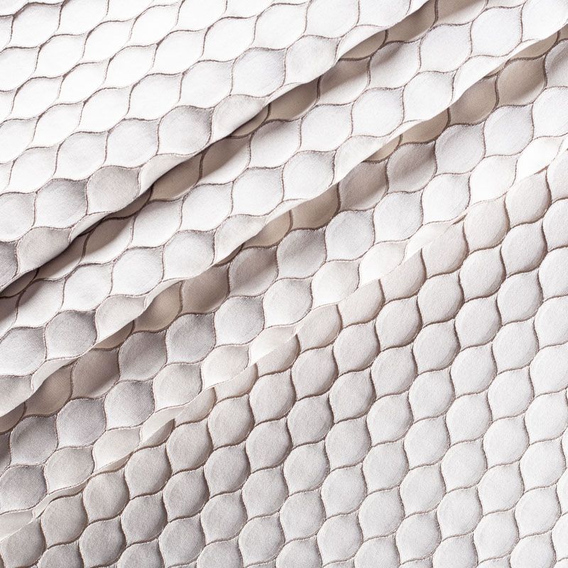 Стильная жаккардовая ткань из коллекции Неон известного бренда Fryett's с фактурной поверхностью, которая имитирует соты. Ткань средней плотности имеет сдержанный благородный блеск, прекрасно держит форму, драпируется в устойчивые складки. Подойдет для плотных штор, покрывал, подушек, скатертей, салфеток  и других элементов текстильного интерьера как в самостоятельном исполнении, так и качестве компаньона к цветным варинтам.