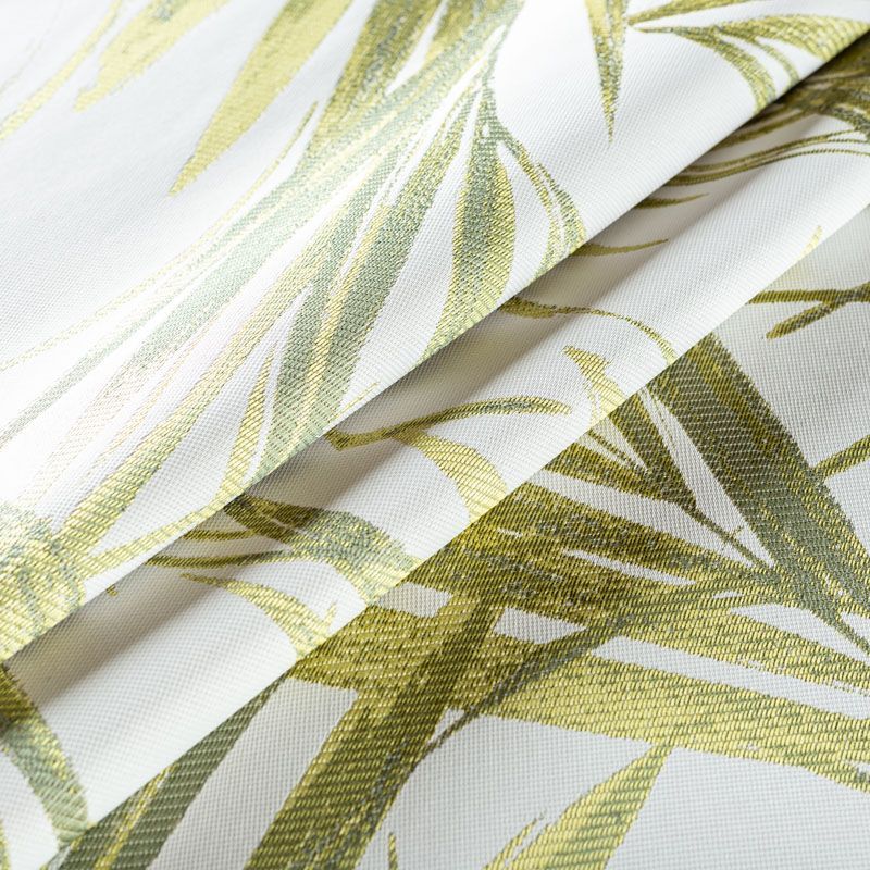 Жаккардовая ткань немецкого производства с крупным растительным принтом в салатово-зеленых оттенках. Поверхность ткани матовая, фактурная. Подойдет для оформления интерьера кухни-столовой, спальни, детской комнаты в качестве портьер, римской шторы, покрывала, подушек, чехлов для мебели в современном стиле.