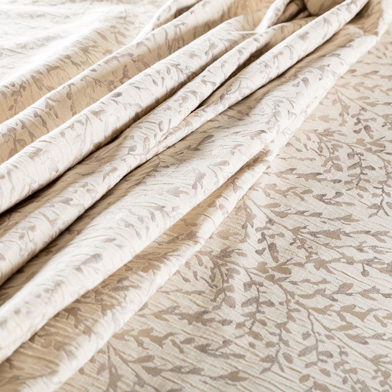 Стильная жаккардовая ткань бежевого натурального оттенка с великолепным растительным дизайном из коллекции Фабио известного бренда Fryett's. Ткань высокой плотности, имеет фактурную поверхность и сдержанный сатиновый блеск, прекрасно держит форму. Ткани этой коллекции прекрасно впишутся в традиционный и современный интерьер в качестве римской или классической шторы, подушек, обивки мебели.