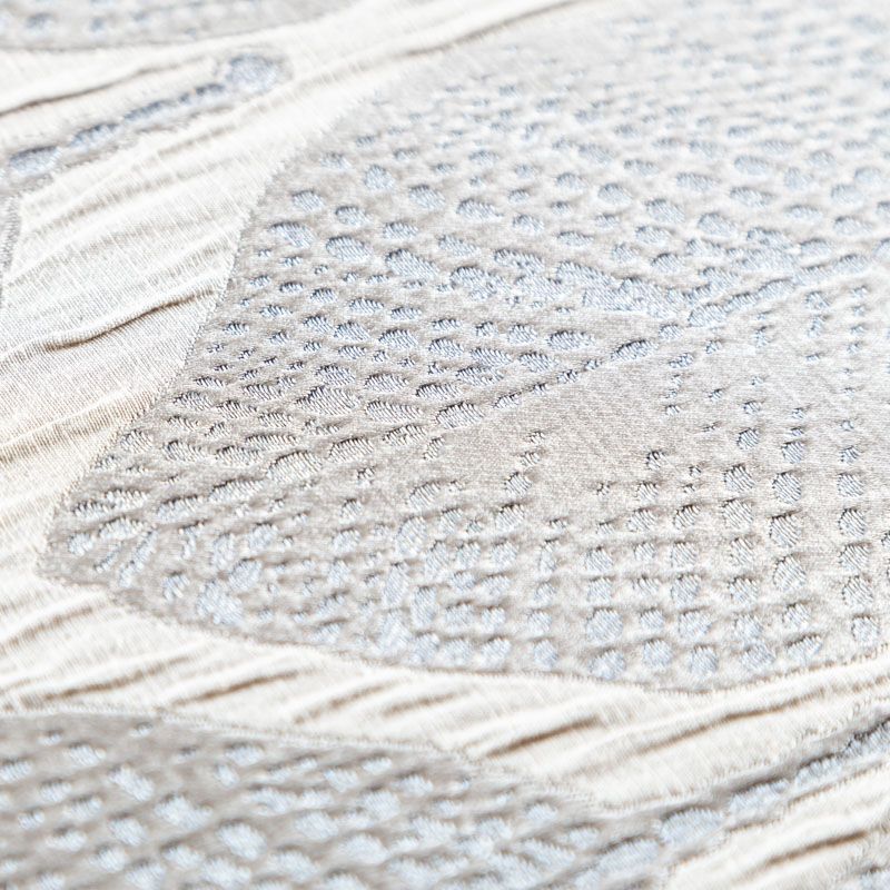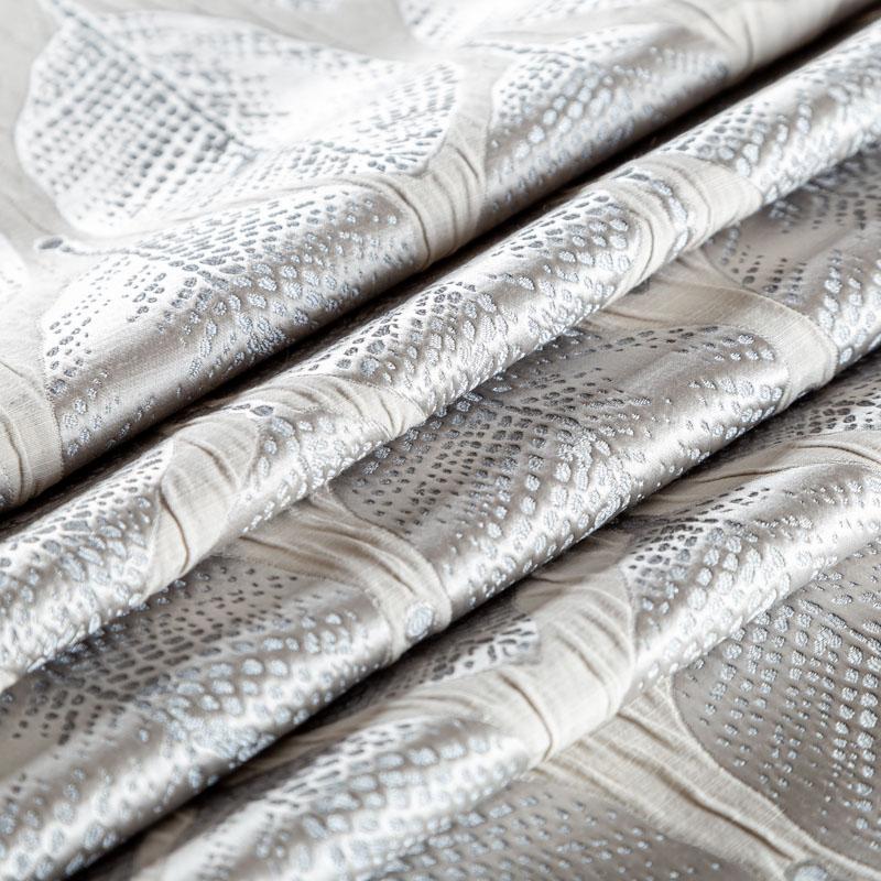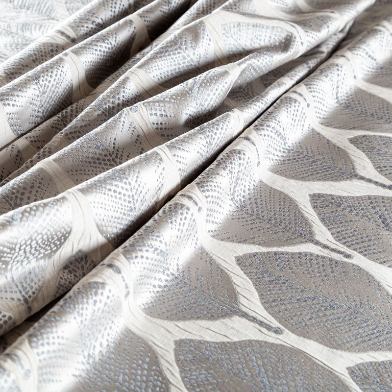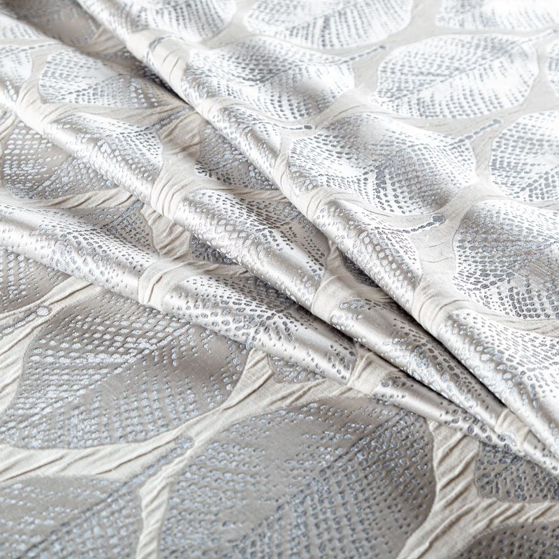 Стильная жаккардовая ткань светло-серого оттенка с потрясающим геометрическим стилизованным дизайном листьев из коллекции Акация известного бренда Fryett's. Ткань высокой плотности, имеет фактурную поверхность и сдержанный сатиновый блеск, прекрасно держит форму. Ткани этой коллекции прекрасно впишутся в традиционный и современный интерьер в качестве римской или классической шторы, подушек, обивки мебели.