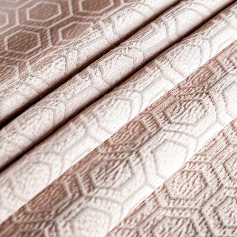 Стильная жаккардовая ткань розоватого оттенка с элегантным геометиречским дизайном из коллекции Кавала известного бренда Fryett's. Ткань высокой плотности, имеет фактурную поверхность и сдержанный сатиновый блеск, прекрасно держит форму. Ткани этой коллекции прекрасно впишутся в традиционный и современный интерьер в качестве римской или классической шторы, подушек, обивки мебели.