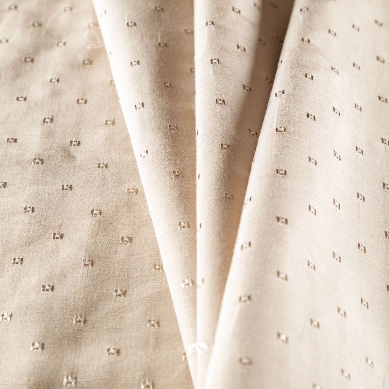 Изысканная портьерная ткань на хлопковой основе от известного бренда Fryett's с фактурной поверхностью, которая имитирует дикий шелк. Ткань средней плотности имеет сдержанный благородный блеск, хорошо держит форму и драпируется. Подойдет для портьер, римсой шторы, покрывал, подушек, скатертей, салфеток  и других элементов текстильного интерьера как в самостоятельном исполнении, так и качестве компаньона к цветным варинтам.