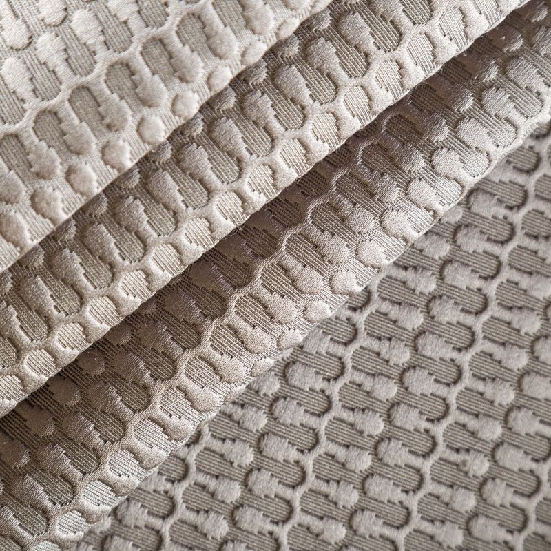 Стильная ткань серо-бежевого оттенка с объемным жаккардовым абстрактным дизайном из коллекции Нова известного бренда Fryett's. Ткань высокой плотности, имеет фактурную поверхность и сдержанный сатиновый блеск, прекрасно держит форму. Ткани этой коллекции прекрасно впишутся в традиционный и современный интерьер в качестве римской или классической шторы, покрывала, подушек, чехдлов для мебели.