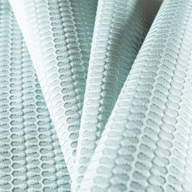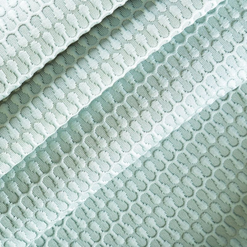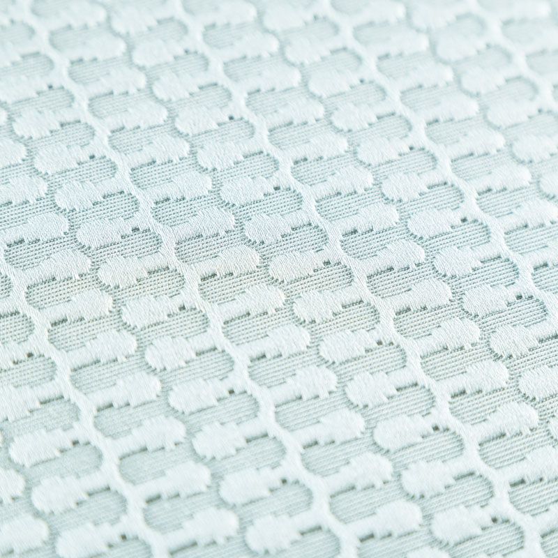Стильная ткань светлого оттенка с объемным жаккардовым абстрактным дизайном из коллекции Нова известного бренда Fryett's. Ткань высокой плотности, имеет фактурную поверхность и сдержанный сатиновый блеск, прекрасно держит форму. Ткани этой коллекции прекрасно впишутся в традиционный и современный интерьер в качестве римской или классической шторы, покрывала, подушек, чехдлов для мебели.