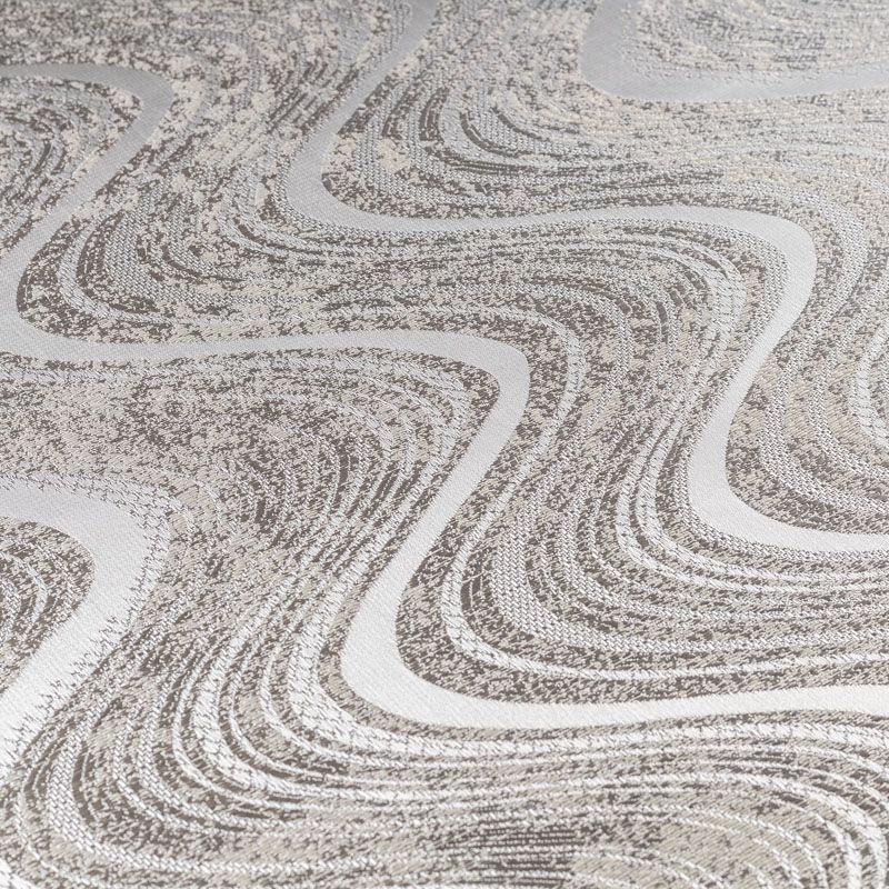 Интересная жаккардовая ткань с абстрактным рисунком в виде горизонтальных "волн" прекрасно подойдет для стильного современного интерьера. Ткань средней плотности, мягкая, хорошо драпируетсяи держит форму. Подойдет в качестве штор для гостиной, спальни, также можно использовать для пошива покрывала, декоративных чехлов, подушек, римской шторы.