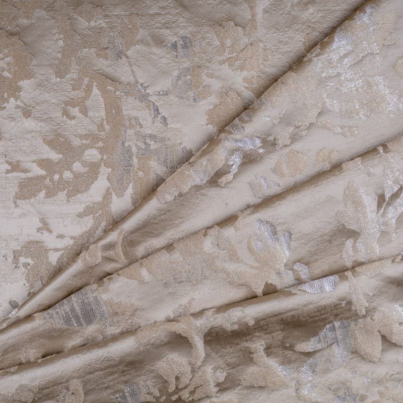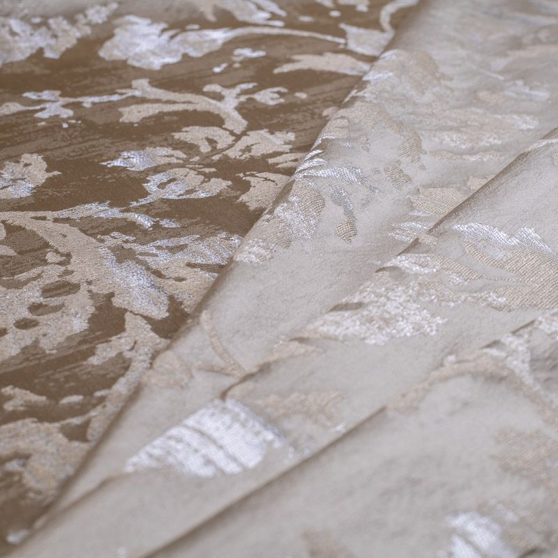 Итальянская жаккардовая портьерная ткань в благородной цветовой гамме с цветочно-растительным орнаментом. Ткань хорошо драпируется.  За счет сочетания шелковых и льняных нитей рисунок как будто вытравлен на поверхности ткани. Подходит для пошива штор, ламбрекенов, покрывал, наволочек, чехлов на мебель и других элементов декора для стилизованных классических интерьеров.