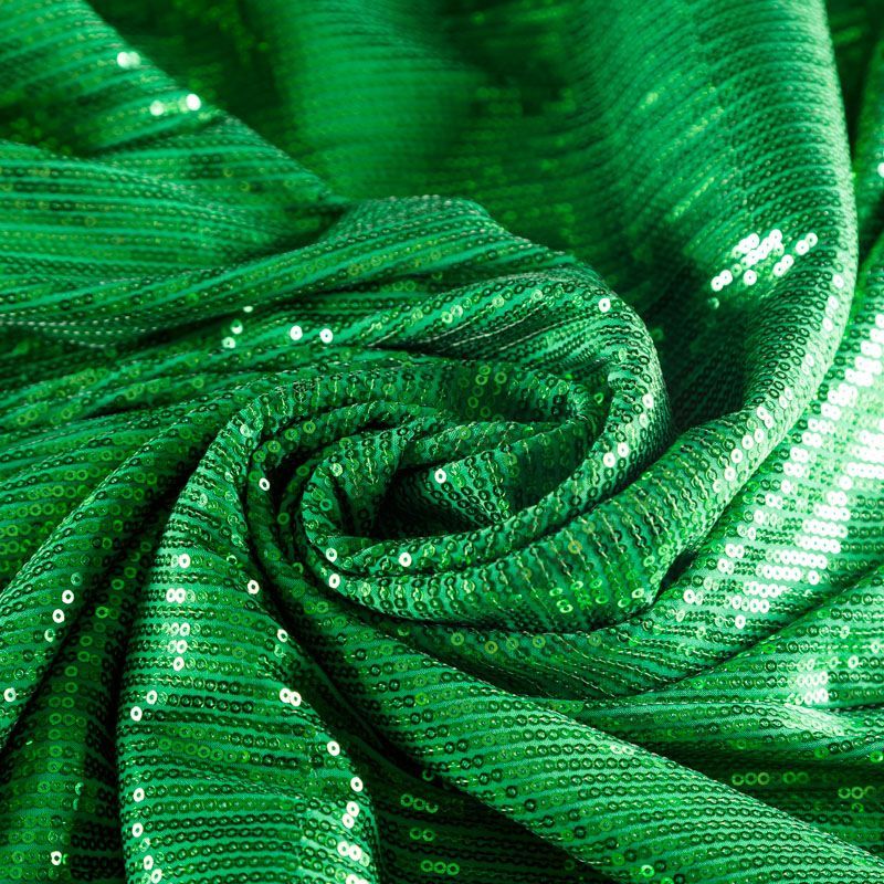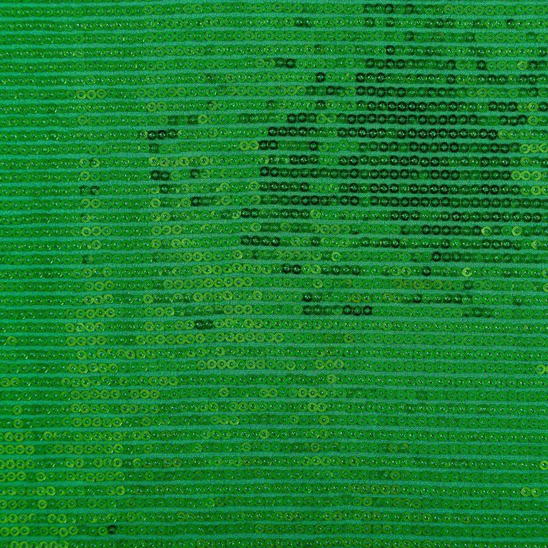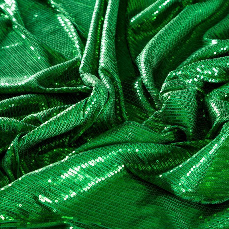 Блестящие пайетки сочного зеленого оттенка. Мелкие, размером около 3 мм. Основа - трикотажное полотно, комфортное в носке. Ткань не прозрачная, тянется.  Подойдет для вечернего коктельного платья или юбки, комбинезона, топа, танцевальных и сценических костюмов.