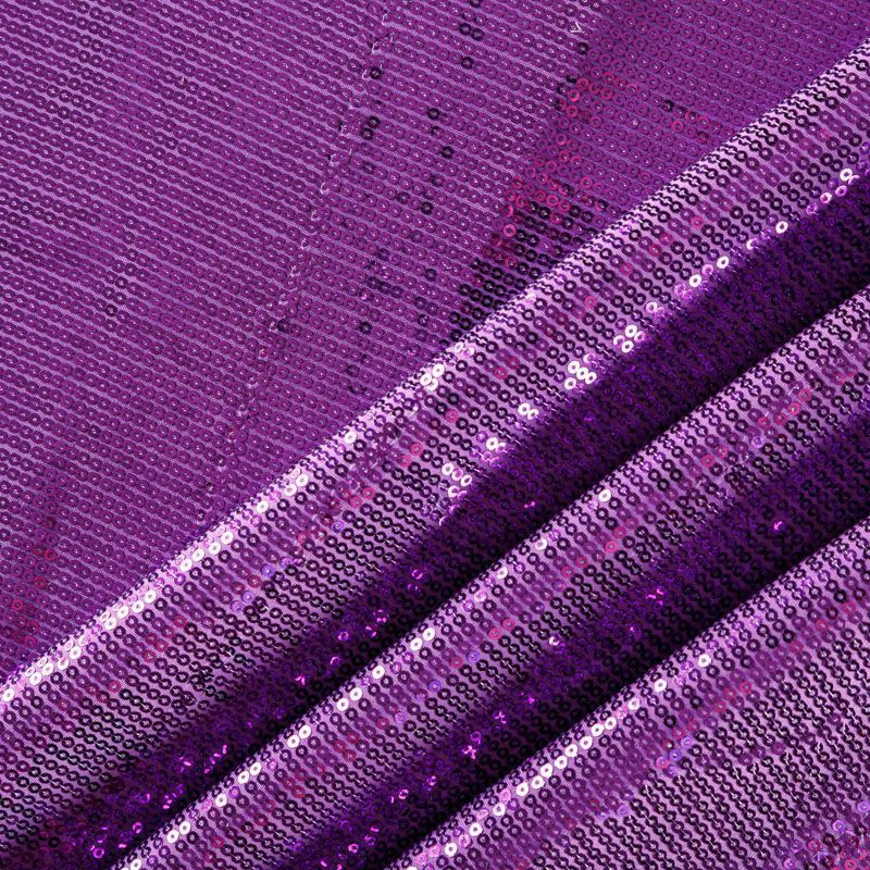 Блестящие пайетки насыщенного сиреневого оттенка. Мелкие, размером около 3 мм. Основа - трикотажное полотно, комфортное в носке. Ткань не прозрачная, тянется. Подойдет для вечернего коктельного платья или юбки, комбинезона, топа, танцевальных и сценических костюмов.