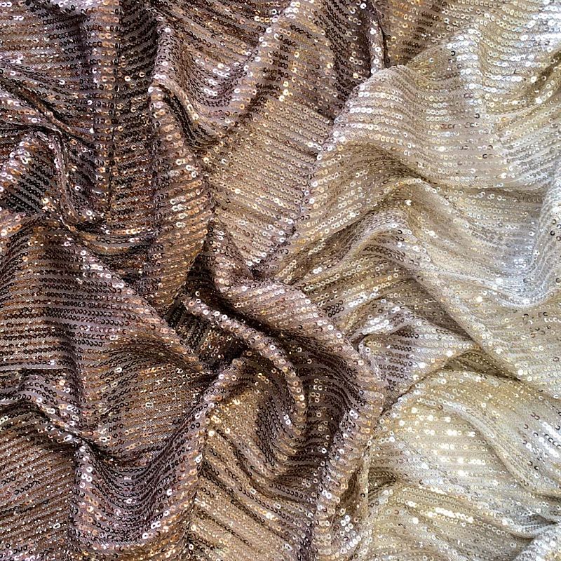 Невероятные пайетки на тонкой сетке с роскошным мерцанием мелких блесток с переходом цвета. Ткань очень хорошо драпируется, красиво переливается, имеет глянцевый блеск, пластичная и эластичная и в длину, и в ширину. Градиент расположен в направлении от кромки к кромке. Набирается объемом. Это может быть нарядное платье, Пайетки — идеальный материал для праздников и вечеринок. Из них получится эффектное платье, жакет, боди, туника, юбка или комбинезон.