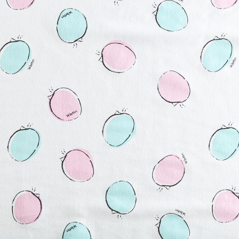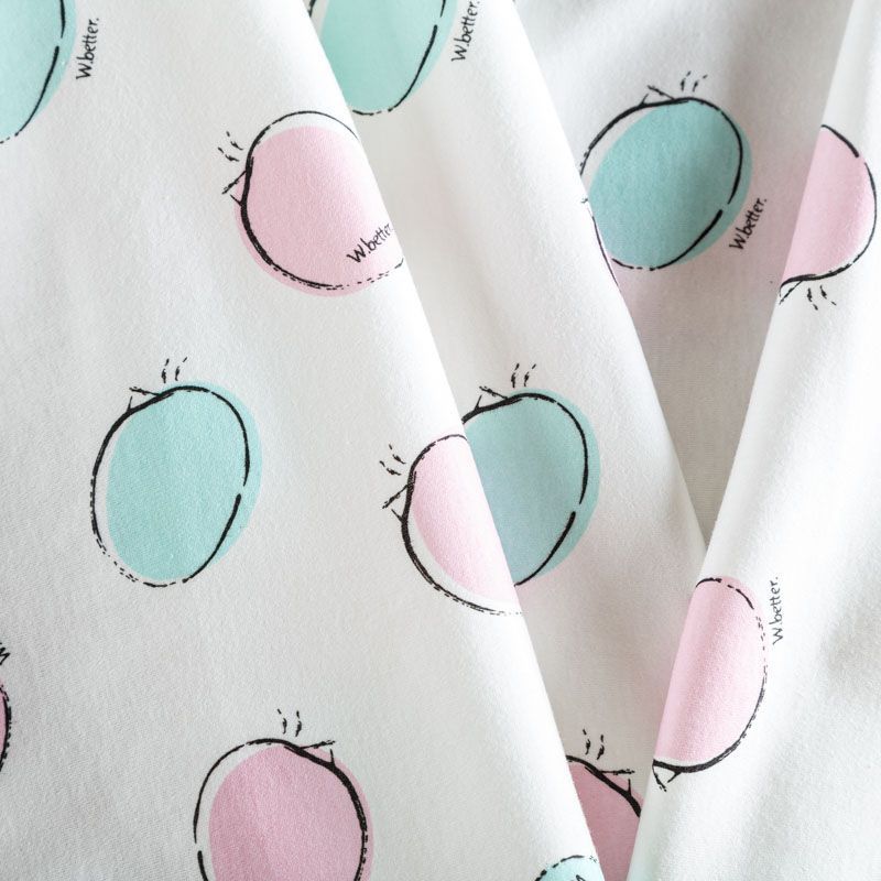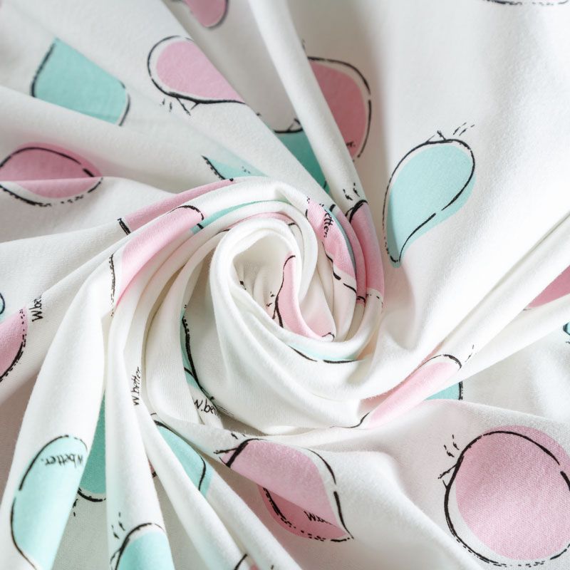 Хлопковый трикотаж качества пенье с детским принтом. Поверхность ткани гладкая, полотно средней плотности, не толстое, мягкое и нежное на ощупь, тянется за счет эластана в составе. Прерасно подойдет для пошива детской одежды, постельного белья и комплектов в кроватку, пижамы, домашней и летней одежды.