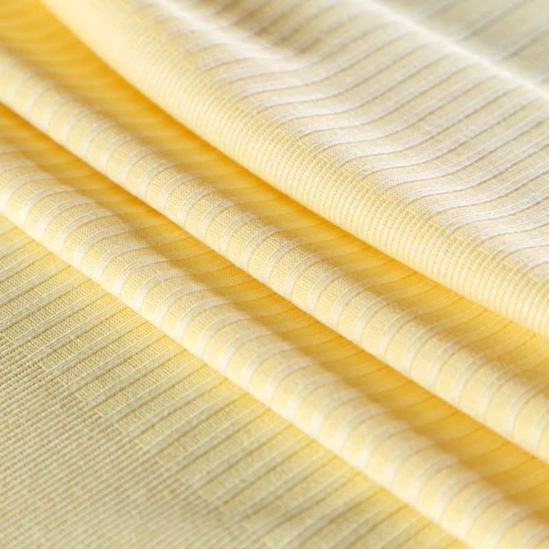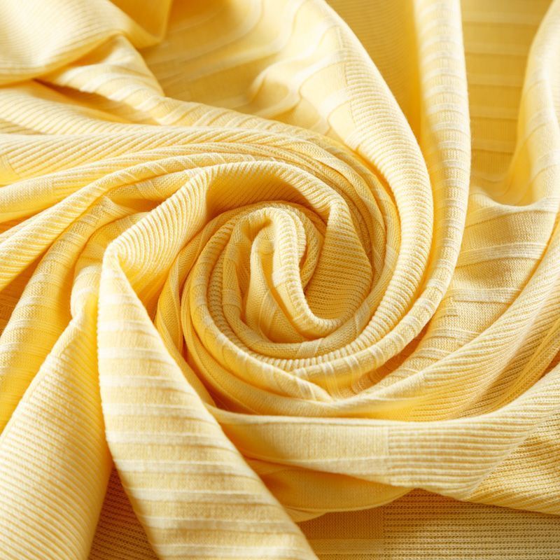 Трикотаж средней плотности, с высокой степенью эластичности, поверхность рельефная за счет эффекта резинки. С изнанки трикотаж гладкий, комфортный, подходит для использования без подклада. Сшить из такого полотна можно топы, лонгсливы, водолазки, платья, юбки, брючные комплекты. Направление полос - вдоль линии кромки.