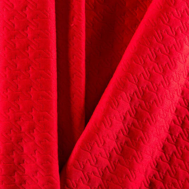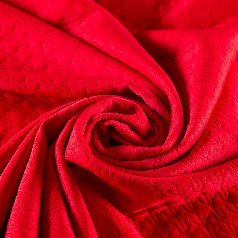Плотное трикотажное полотно с имитацией стежки. Поверхность ткани объемная, мягкая, приятная на ощупь. Трикотаж не просвечивается, хорошо тянется за счет эластана в составе, держит форму. Прекрасно подойдет для пошива легких пальто, курток, бомберов, кардиганов, платьев, юбок, шорт.