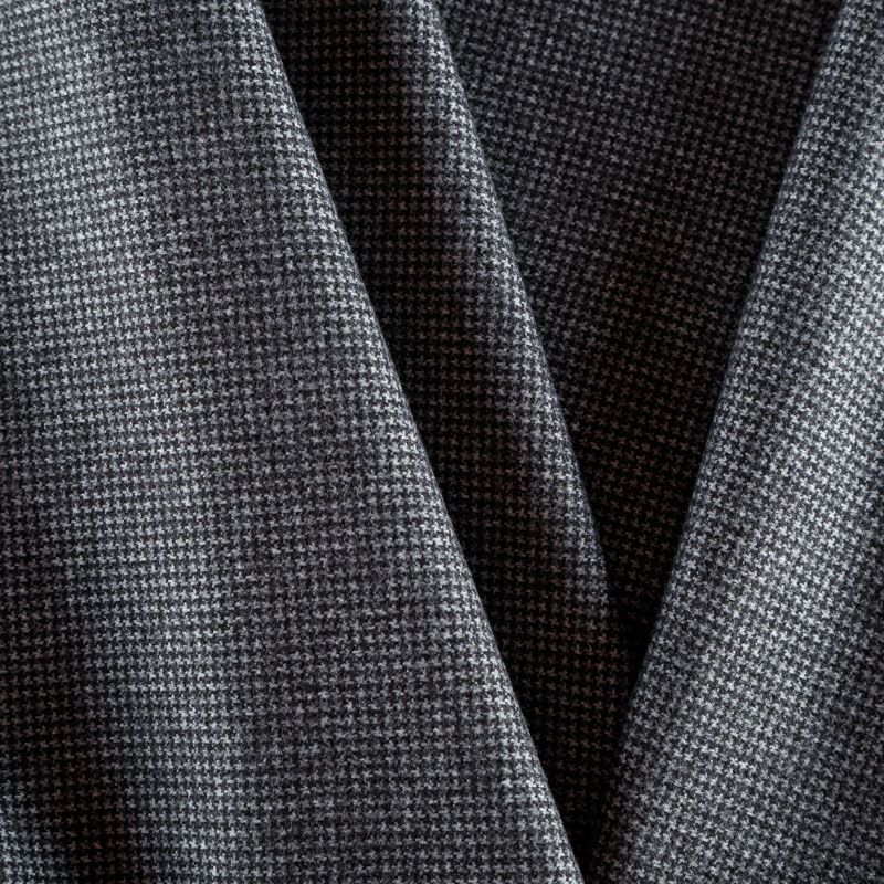Трикотаж средней толщины, хорошо тянется за счет эластана в составе. Мелкий ненавязчивый узор "гусиная лапка" образуется переплетением черных и белых нитей. Ткань не сухая, мягкая, но плотная, не просвечивает, теплая, хорошо драпируется. Отлично подойдет для пошива легкой верхней одежды, жакетов, костюмов, юбок.