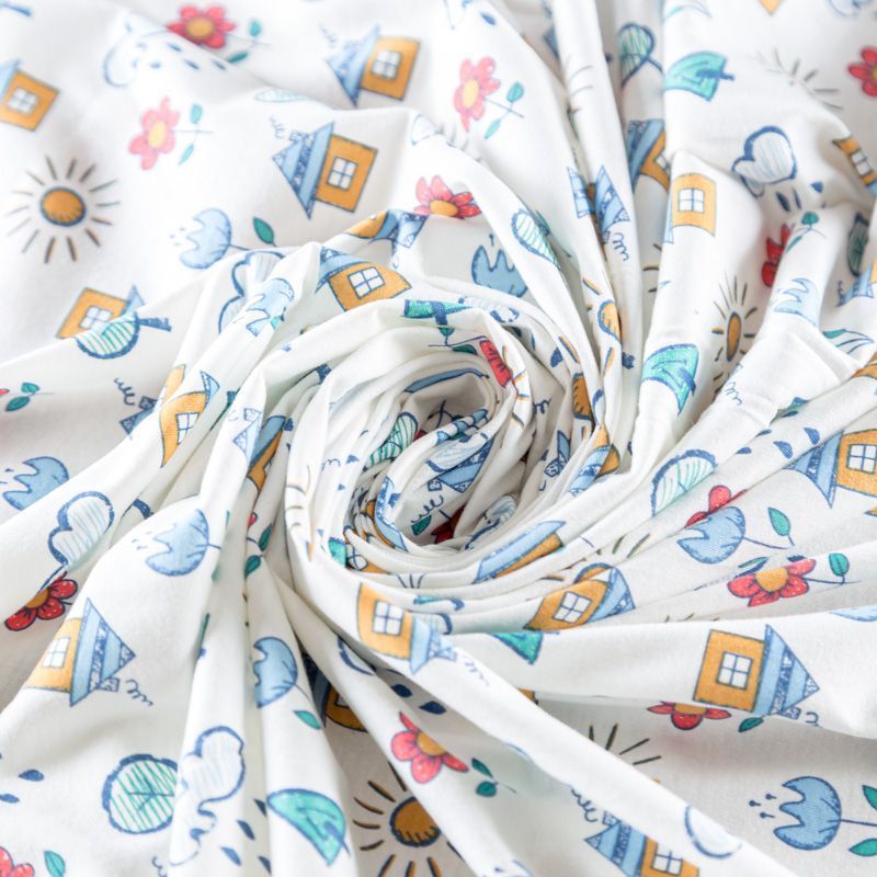Приятный на ощупь, гладкий хлопковый трикотаж-кулирка с эластаном, средней плотности с веселым детским принтом. Подойдет для пошива нижнего белья, изделий для детей, а также для спортивной и домашней одежды, пижамы.