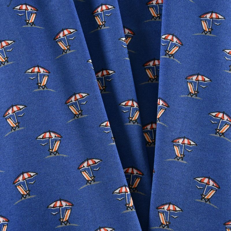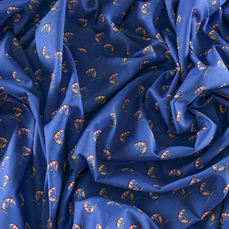 Итальянский брендовый трикотаж из хлопка с добавлением эластана темно-синего оттенка с мелким принтом. Полотно достаточно тонкое и легкое, но не просвечивает. Материал мягкий, хорошо растяжимый, не просвечивает. Подойдет для пошива футболок, лонгслива, топов, спортивных платьев, домашней одежды.