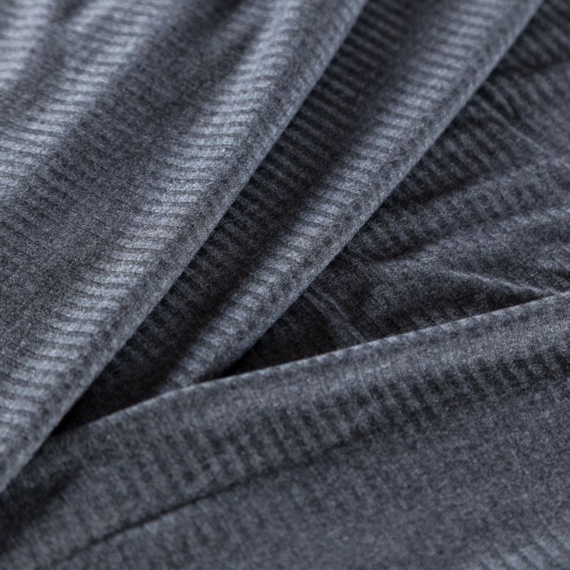 Трикотаж-лапша средней плотности, с высокой степенью эластичности, поверхность рельефная за счет эффекта резинки. С изнанки трикотаж гладкий, комфортный, подходит для использования без подклада. Сшить из такого полотна можно топы, лонгсливы, водолазки, платья,  юбки, брючные комплекты. Направление полос - вдоль линии кромки.