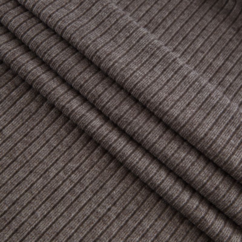 Поверхность фактурная, мягкая и приятная на ошупь. Трикотаж хорошей плотности, не просвечивает, хорошо драпируется, умеренно держит форму. Подойдет для пошива водолазки, лонгслива, кардигана, свитера, широких брюк.