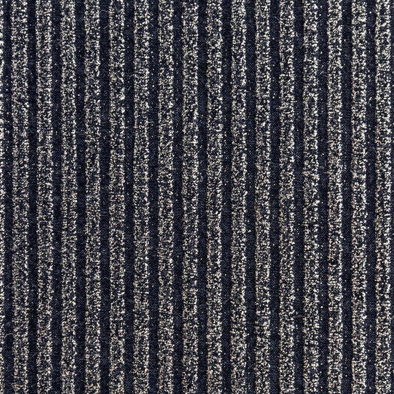 Трикотаж-лапша средней плотности, с высокой степенью эластичности, поверхность рельефная за счет эффекта резинки и мерцающая за счет металлизированного напыления. С изнанки трикотаж гладкий, комфортный, подходит для использования без подклада. Сшить из такого полотна можно водолазки, платья, топы, юбки, комплекты, нарядные изделия. Направление полос - вдоль линии кромки.