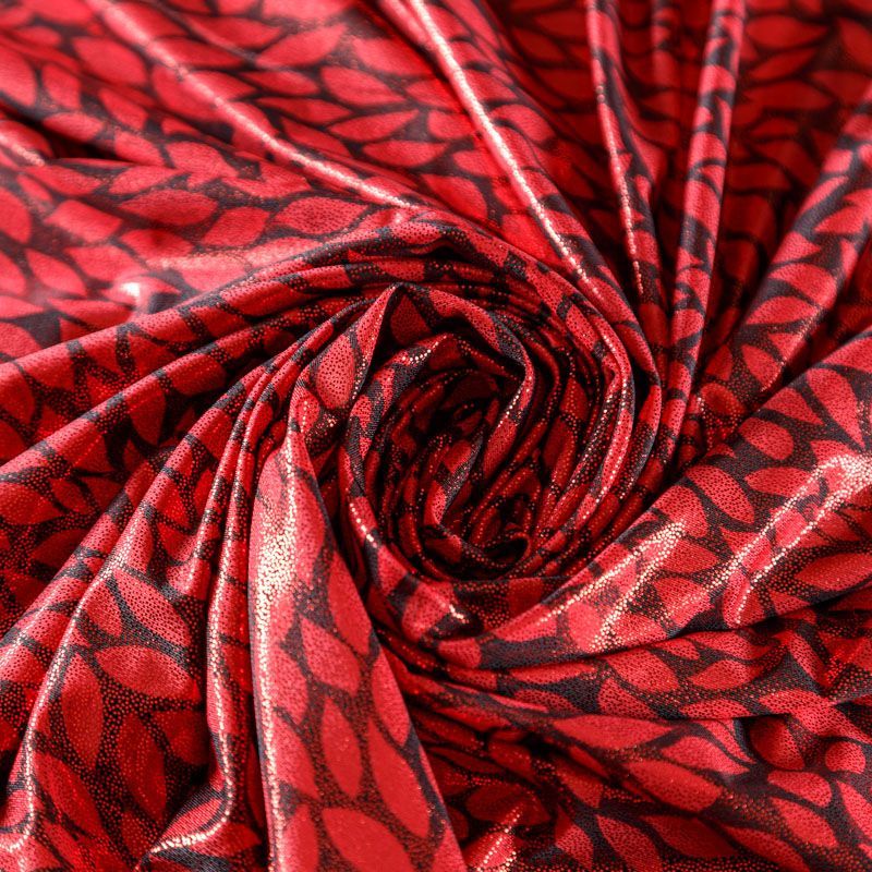 Трикотаж с напылением 056-08048 красный принтованный в Ухте