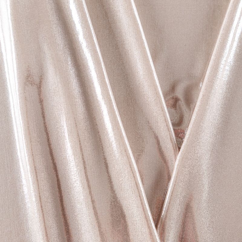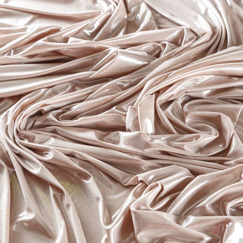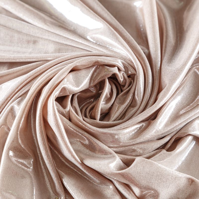 Эффектное трикотажное полотно с мерцающим напылением. Материал очень пластичный, образует струящиеся мягкие складки, отлично тянется, не просвечивает, не мнется. Изнаночная сторона матовая, приятная на ощупь. Идеальный выбор для нарядных платьев, топов, маек, гимнастических и танцевальных костюмов.
