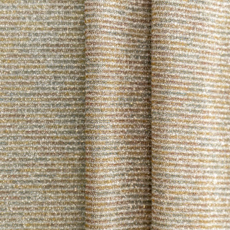 Мягкое и эффектное трикотажное полотно с металлизированным напылением. Структура полотна плотная, легко растяжимая, эластичная. С лицевой стороны поверхность ткани  слегка шероховатая на ощупь, характеризуется заметным блеском «металлик». С изнанки трикотаж гладкий, комфортный, подходит для использования без подклада. Отлично пододет для пошива водолазки, платья, топа, леггинсов, спортивных купальников, нарядных изделий.