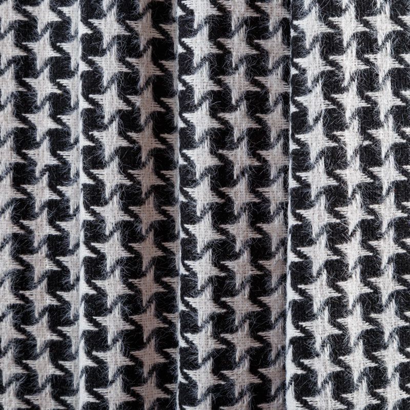 Костюмный твид с черного цвета с геометрическим узором молочного оттенка. Ткань плотная, мягкая, приятная на ощупь, прочная, не вытирается. Отличный выбор для осенних костюмов, облегченного пальто, куртки, бомбера, юбки, шорт или теплого платья.