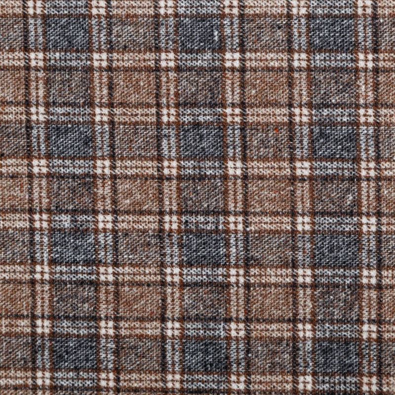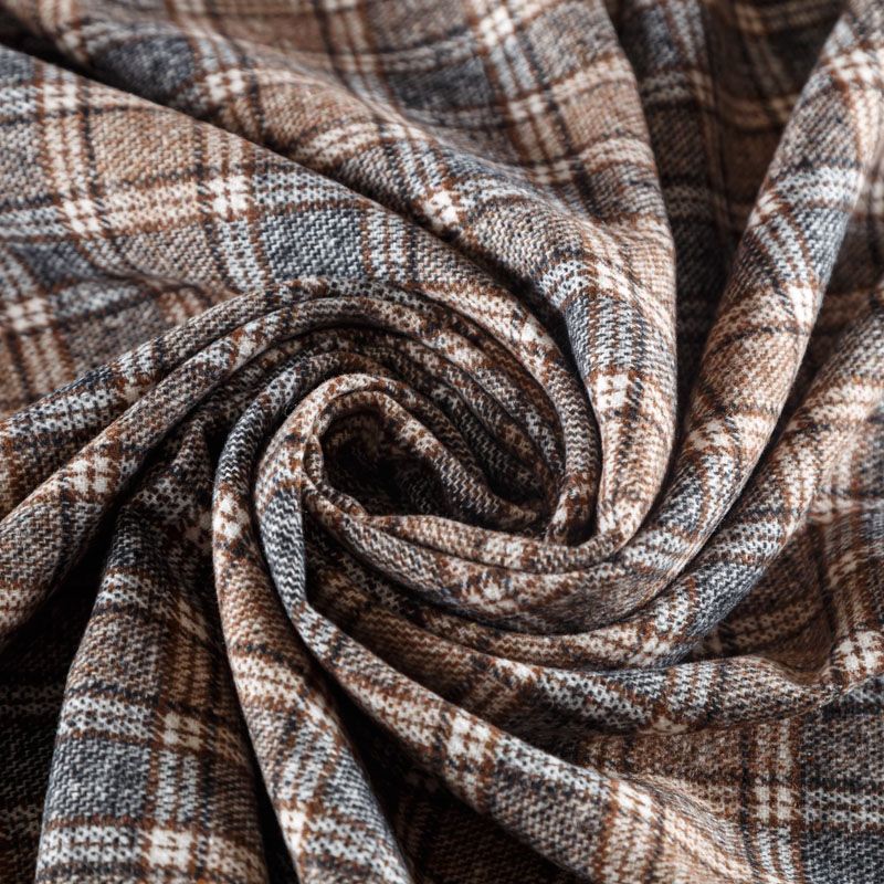 Фактурная и плотная твидовая ткань с добавлением хлопка в красивую серо-бежевую клетку. Ткань мягкая, пластичная, приятная на ощупь. Хорошо драпируется и образует формоустойчивые складки. Твид отлично подходит для пошива костюмов, пальто, пиджаков, брюк и курток, юбок, жилетов, головных уборов в классическом стиле.