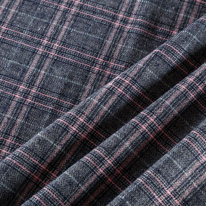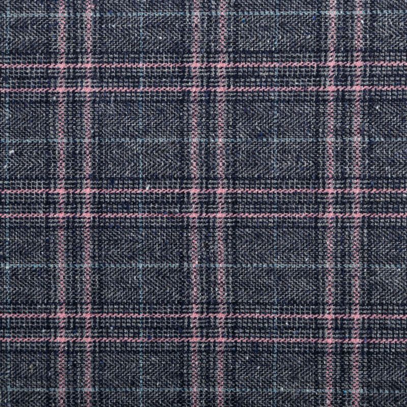 Фактурная и плотная твидовая ткань с добавлением хлопка в красивую черно-серую клетку, которую освежают розовые и голубые полоски. Ткань мягкая, пластичная, приятная на ощупь. Хорошо драпируется и образует формоустойчивые складки. Твид отлично подходит для пошива костюмов, пальто, пиджаков, брюк и курток, юбок, жилетов, головных уборов в классическом стиле.